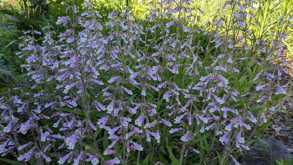 Hairy Beardtongue has been a joy in my garden, thriving happily on my west-facing slope. It’s always buzzing with activity, as big, fuzzy bees seem unable to resist its trumpet-shaped flowers. The blooming season is remarkably long, and last fall, it even surprised me with a second wind of blooms. Few plants give so much throughout the year!